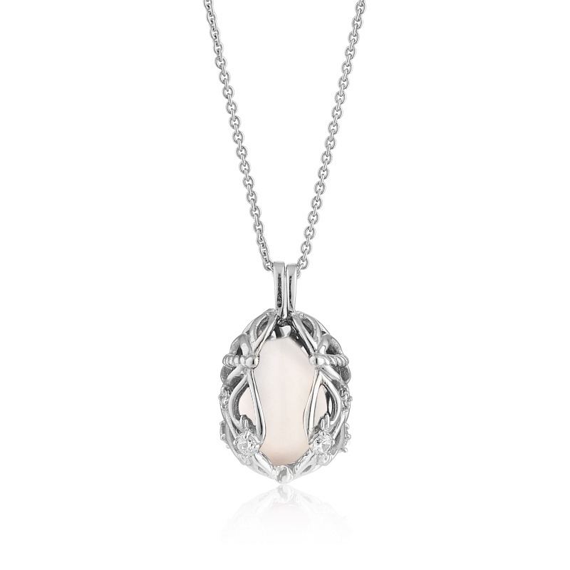 Halskæde i sølv med zirkonia og fin snekvarts. Du kan selv skifte sten i halskæden.