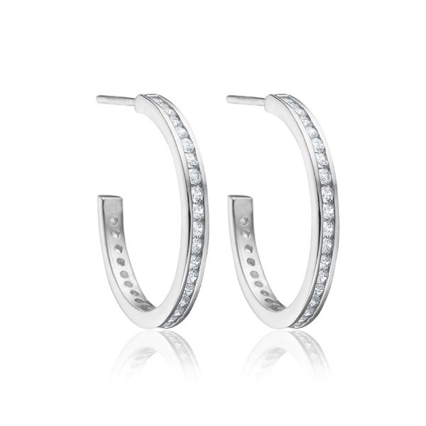 Smukke og stilfulde creoler i sølv, smukt dekoreret med funklende zirkoner.