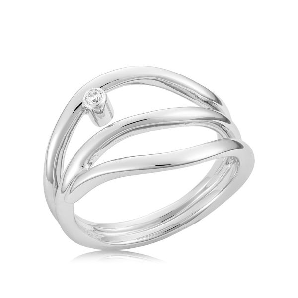 Sølvring med bølgende former og med smuk zirkonia.