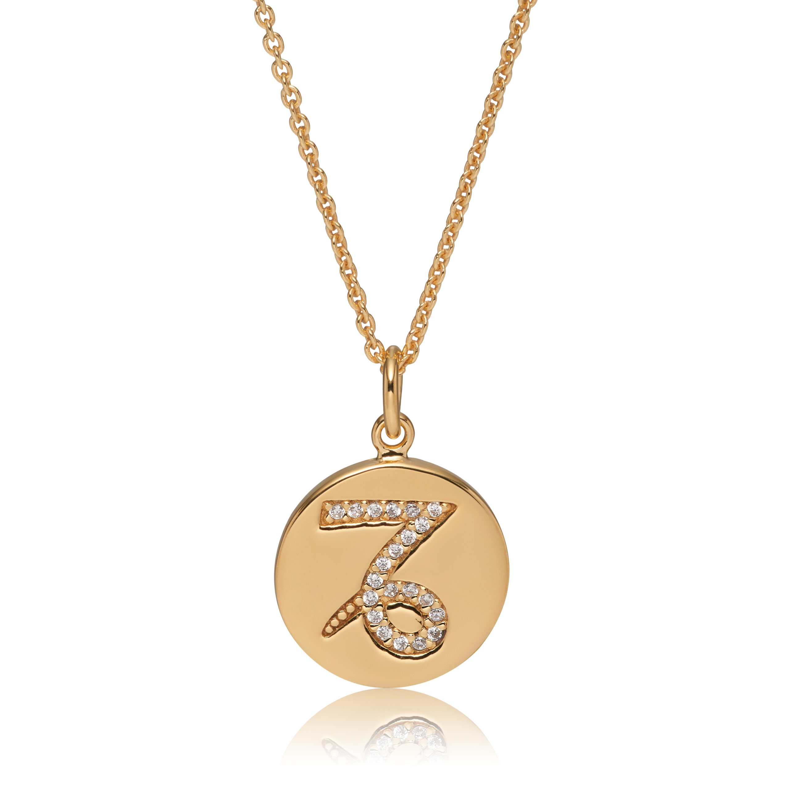 Halssmykke i guldbelagt sølv med Zodiac Stjenetegn. Smykket er håndfattet med 21 zirkonia.