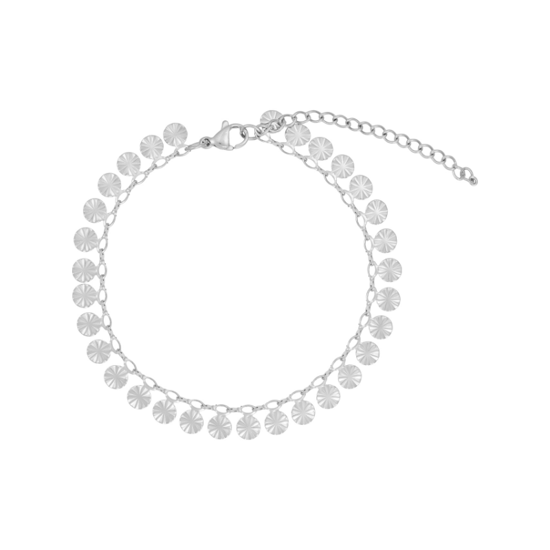 Fin Sunshine ankelkæde i stål. Ankelkæden er 25 cm + 4 cm i forlænger.