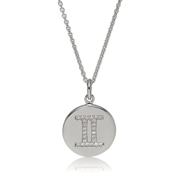 Halssmykke i sølv med Zodiac Stjenetegn. Smykket er håndfattet med 20 zirkonia.