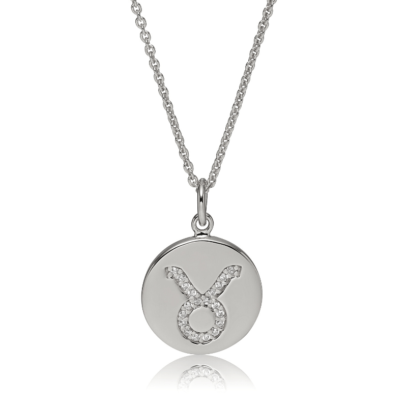 Halssmykke i sølv med Zodiac Stjenetegn. Smykket er håndfattet med 20 zirkonia.