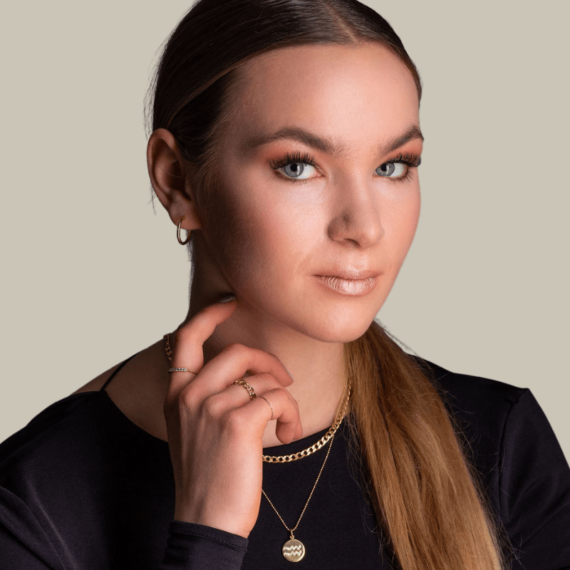 Standardkæden er vores fleksible kæde som er både 42, 45 og 50 cm. Den kædelængde kan enhver pige og kvinde bruge.
