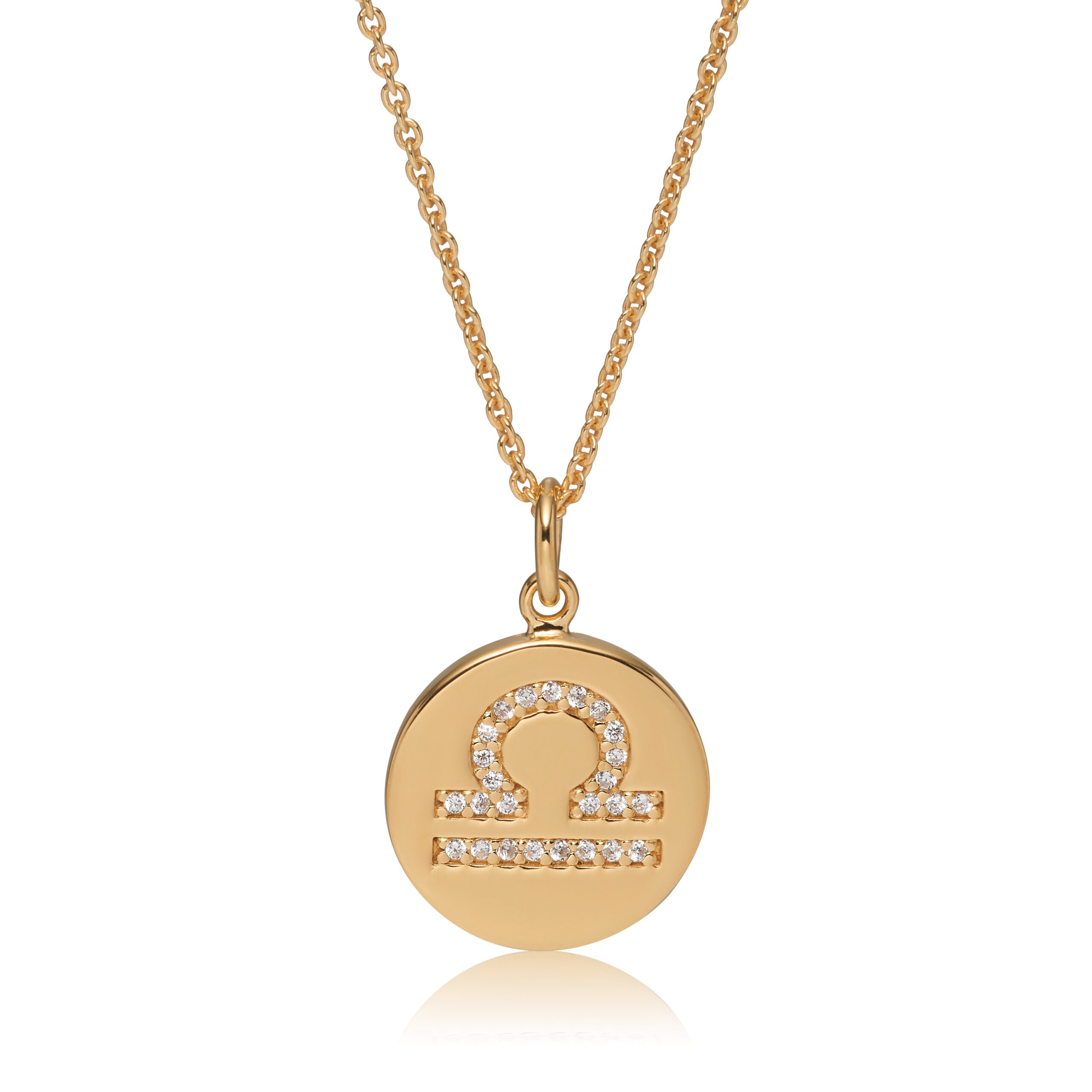 Halssmykke i guldbelagt sølv med Zodiac Stjenetegn. Smykket er håndfattet med 25 zirkonia.