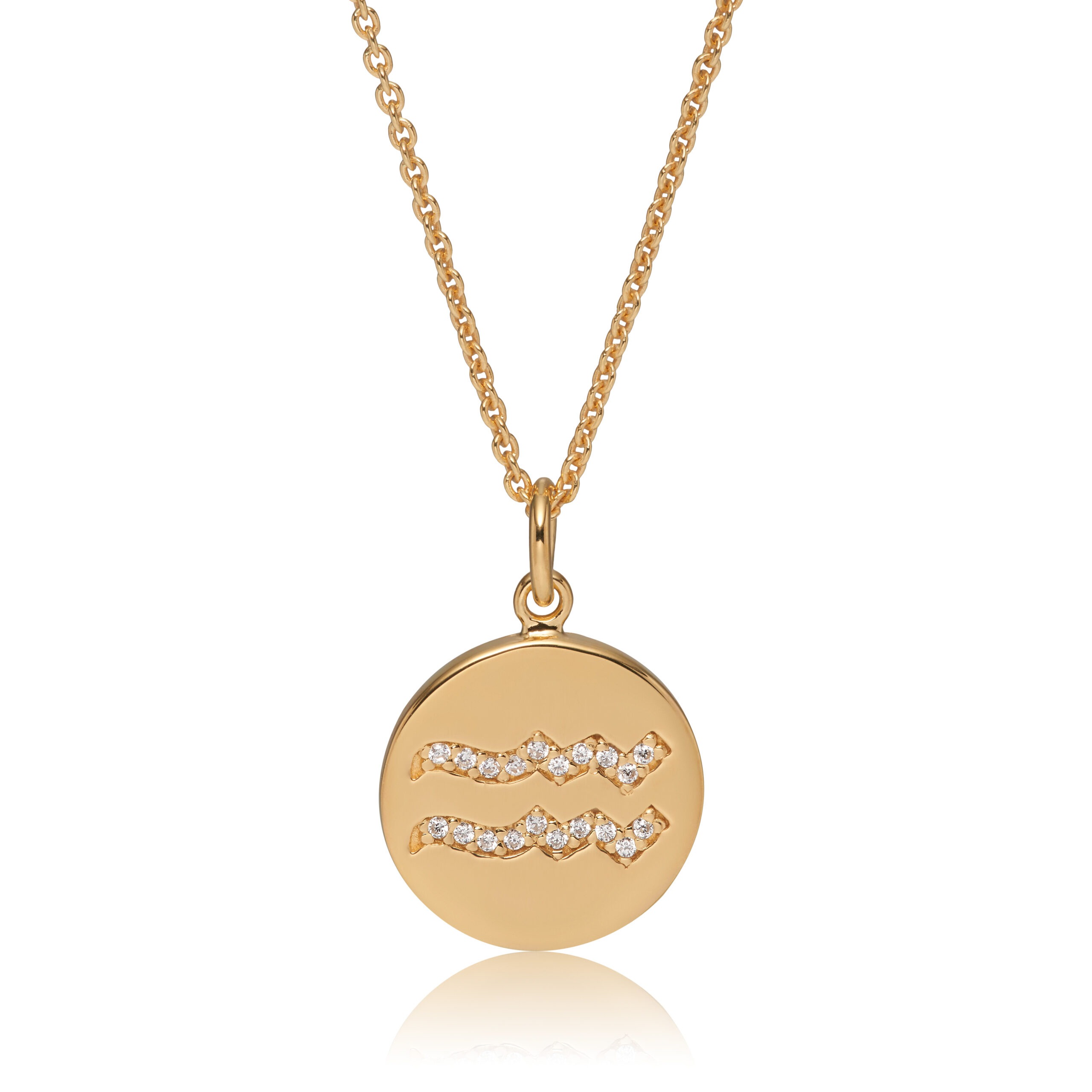 Halssmykke i guldbelagt sølv med Zodiac Stjenetegn. Smykket er håndfattet med 20 zirkonia.